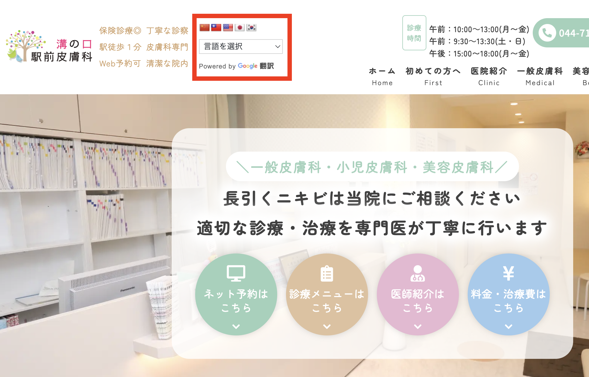 【実例】溝の口駅前皮膚科のホーム画面